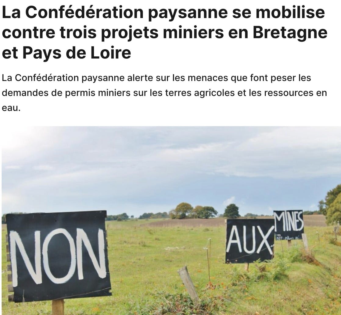 L’association Eau & Rivières de Bretagne alerte sur les dangers environnementaux et sanitaires, notamment la pollution des sols et de l’eau. L’extraction minière risquerait de détruire durablement les écosystèmes locaux. Le droit minier français facilite ces projets au détriment des droits des propriétaires. Une forte opposition citoyenne et politique se mobilise contre ces permis. Malgré ça, les démarches administratives se poursuivent, faisant malheureusement craindre un siècle d’exploitation potentielle avec les nuisances qui vont de paires.