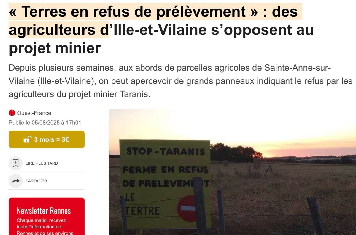 L’exemple de l’Ille et Vilaine qui devient peu à peu une terre de refus de prélèvement avec des panneaux qui commencent à fleurir dans les champs et autres parcelles