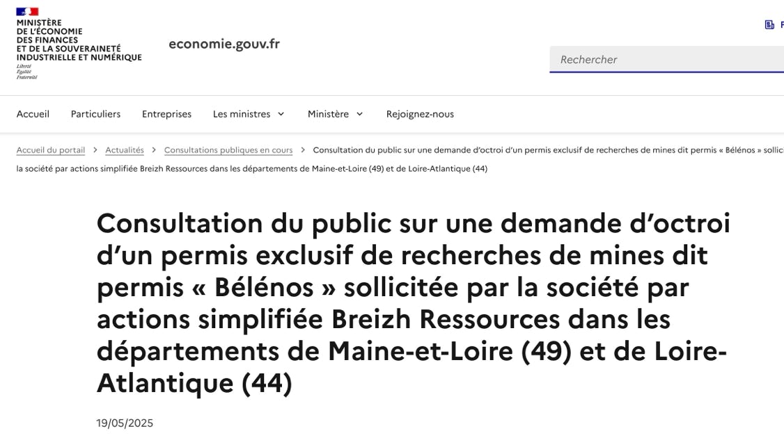 La start-up Breizh ressources porte un projet de recherche minière à cheval sur l'Ouest du Maine-et-Loire et la Loire-Atlantique. Des opposants craignent un impact négatif sur l'environnement. Ils ont lancé le collectif Stop Belenos 49 et prévoient des réunions d'informations.