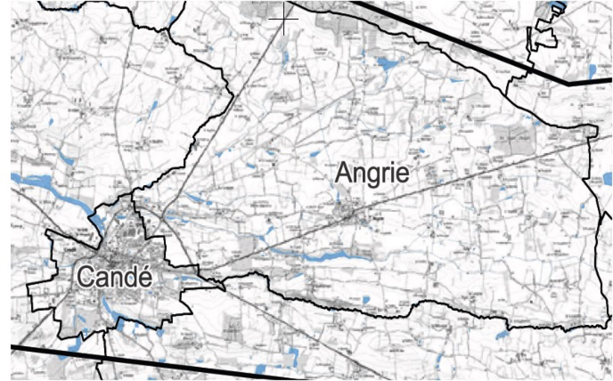 Ci dessous, un extrait de la dite carte présentée par Breiz Ressources, identique à celle de la DREAL de 2017, secteur d’Angrie, les zones humides sont en bleu. Breiz Ressources ne cherche ni à savoir où sont les zones humides ni à les éviter. Mais bien plutôt à les ignorer de peur de perdre du périmètre de recherches minières. Le territoire d’Angrie l’intéresse particulièrement en raison de son passé minier: or et antimoine.